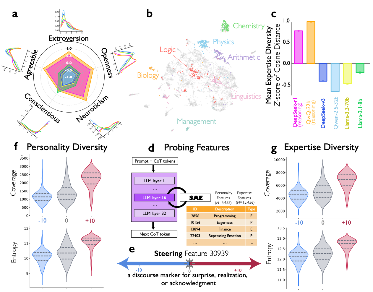 To understand the mechanism behind these effective internal dialogues, we analyzed the nature of the "speakers" or personas that the model generates. The effectiveness of a group dialogue is often tied to the diversity of its participants. Our research found that models spontaneously generate a diverse cast of internal personas, and this cognitive diversity is a key driver of reasoning performance.